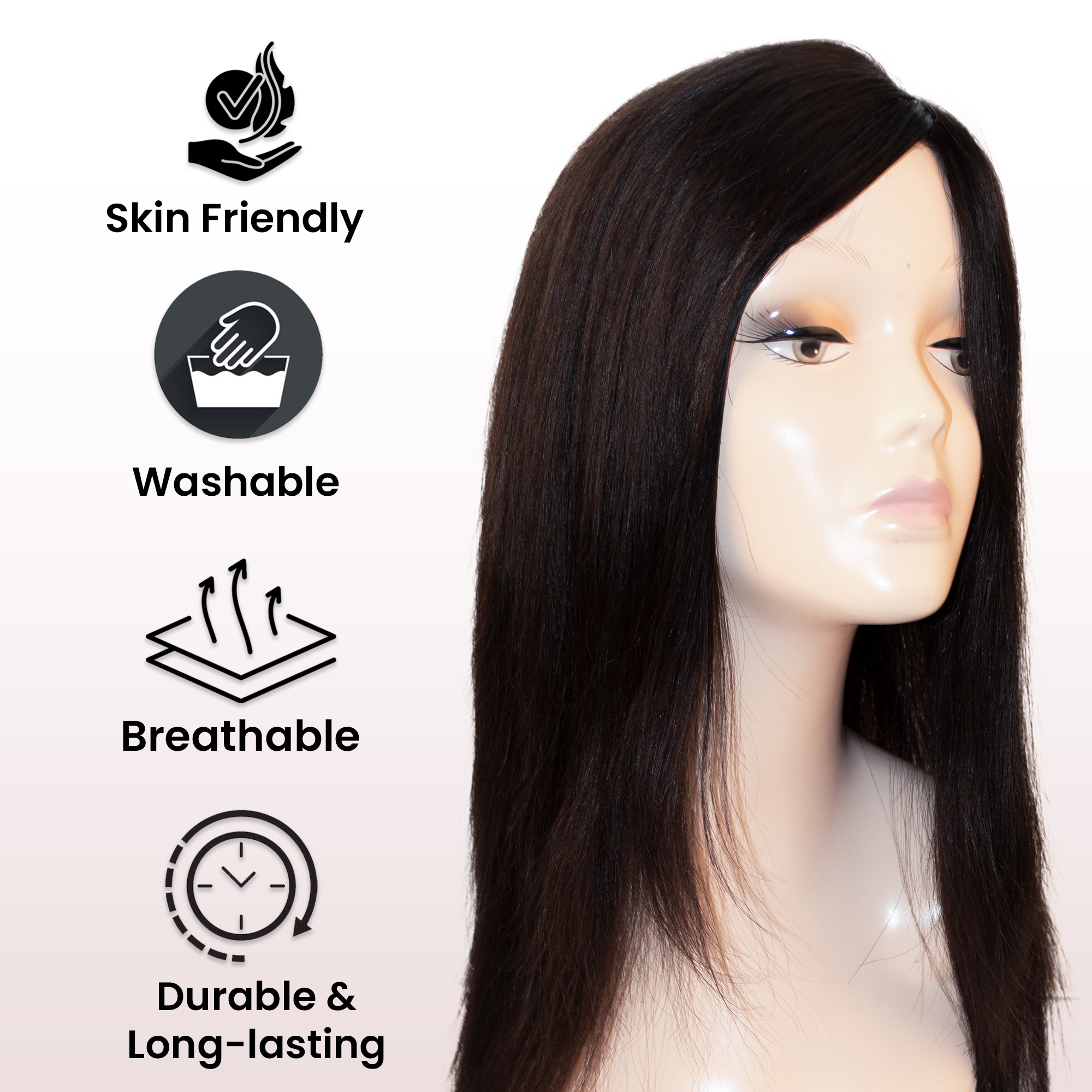 - Styling: Use low heat settings to prolong the lifespan of the hair topper.